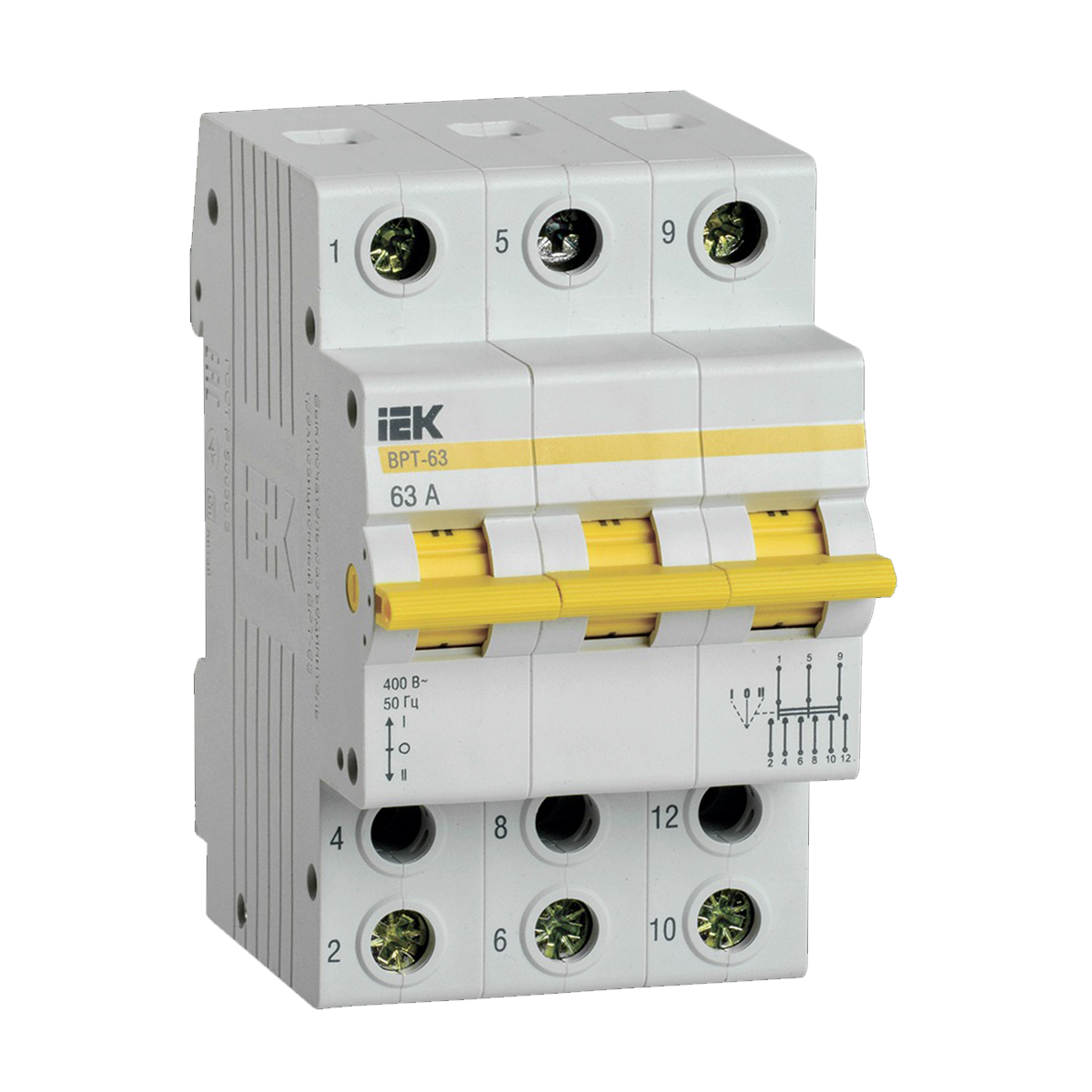 - Выключатель-разъединитель трехпозиционный IEK ВРТ-63 3P 63 А 400 ВIEKА00001258032380 ₽Осталось:2 шт.