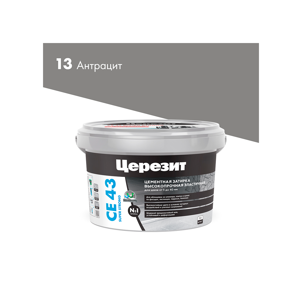 Затирка Церезит цементная для плитки СЕ 43 2 кг Антрацит 13 высокопрочная