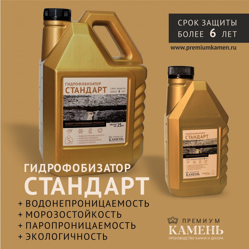 - Пропитка для камня Гидрофобизатор Стандарт 5 лПремиум КаменьА0000102358Нет в наличииОсталось:0 шт.