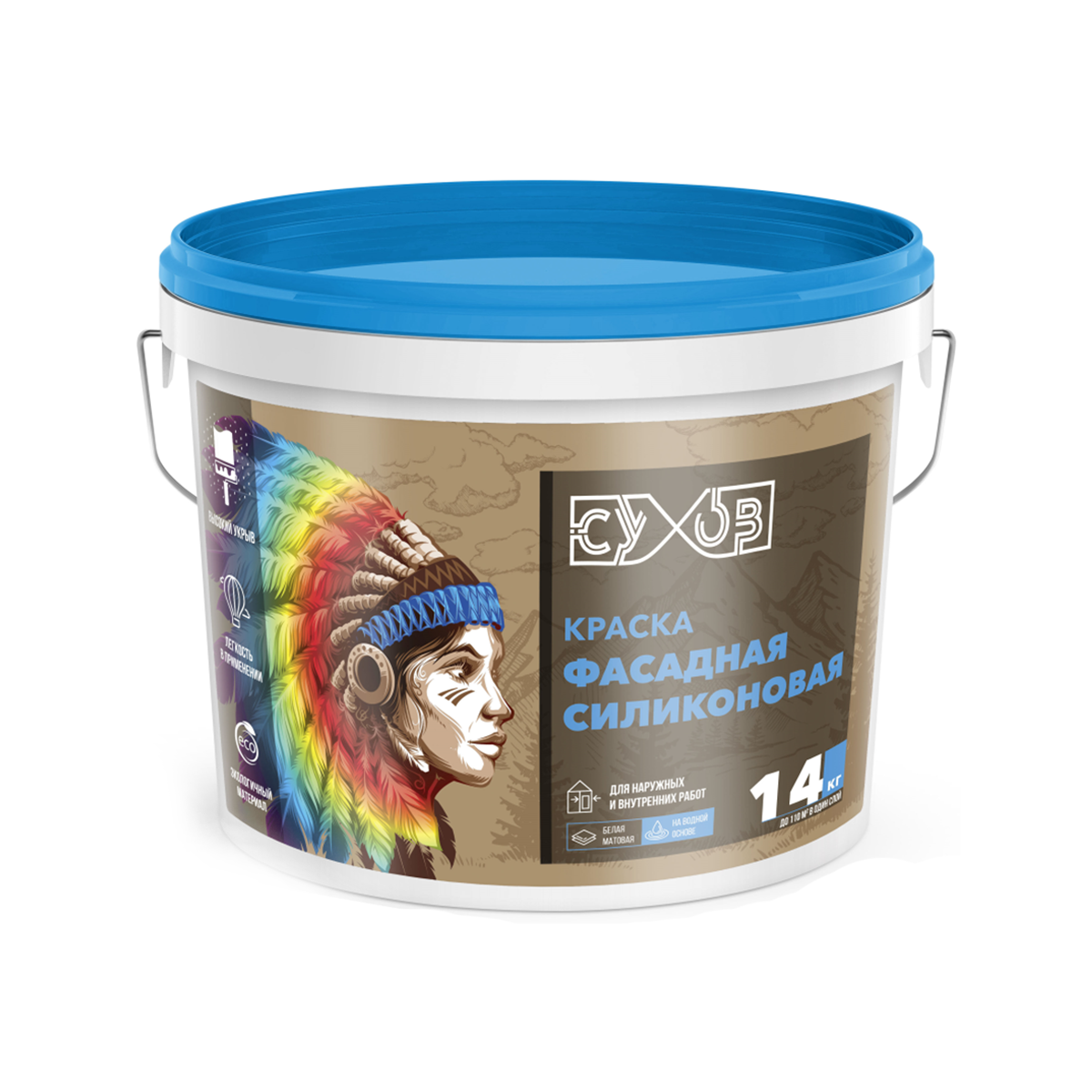- Краска силиконовая Сухов Фасадная белая матовая для внутренних и наружных работ 14 кгСуховА00001175662895 ₽Осталось:328 шт